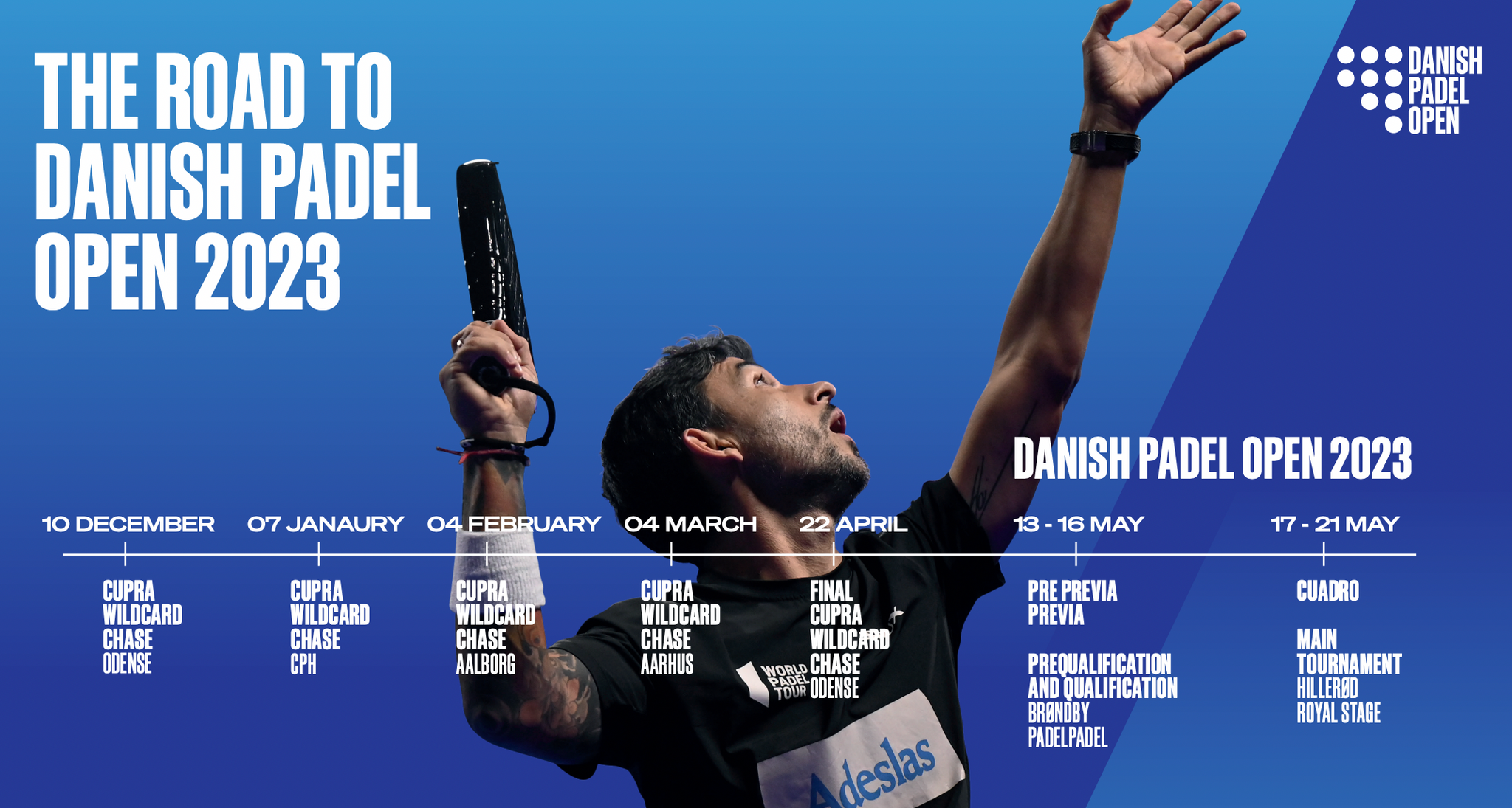 Ialt 4 turneringer fordelt over hele Danmark - Odense, Brøndby, Ålborg og Århus gav alle danske spillere mulighed for at deltage i årets største turnering og nå frem til at stå på banen med verdenstoppen til CUPRA Danish Padel Open 2023.